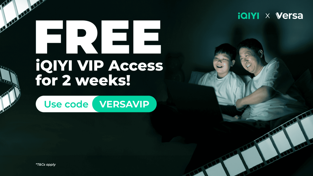 We’ve partnered with our friends at iQIYI to give you 2 weeks of FREE VIP access to on demand video streaming by making an investment under Versa using the code VERSAVIP*, subject to terms and conditions.