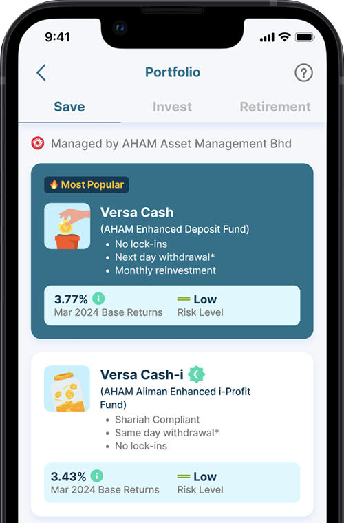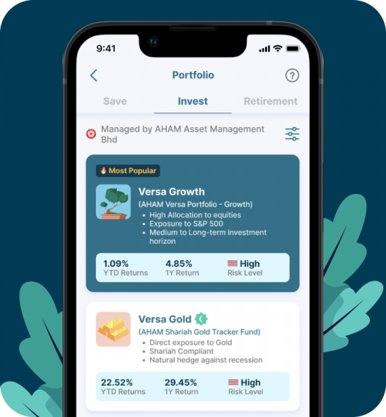 Invest with peace of mind as your funds are managed by AHAM Capital and global experts. Versa Invest funds are actively managed portfolios with a combination of passive and active funds that are able to adapt to different market conditions.