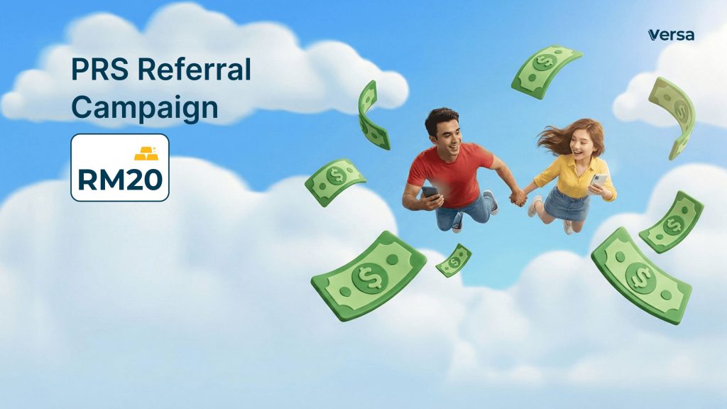 The PRS Referral Campaign is a limited-time promotion that rewards you RM20 for every successful referral that completed onboarding with Versa, and make first cash-in of minimum RM3,000 into any PRS product in Versa Retirement.