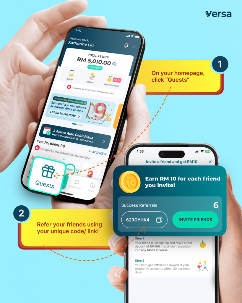 • Step 8: Ensure that your friends make their first cash-in of min. RM100 into any funds in Versa during the Quest Period.