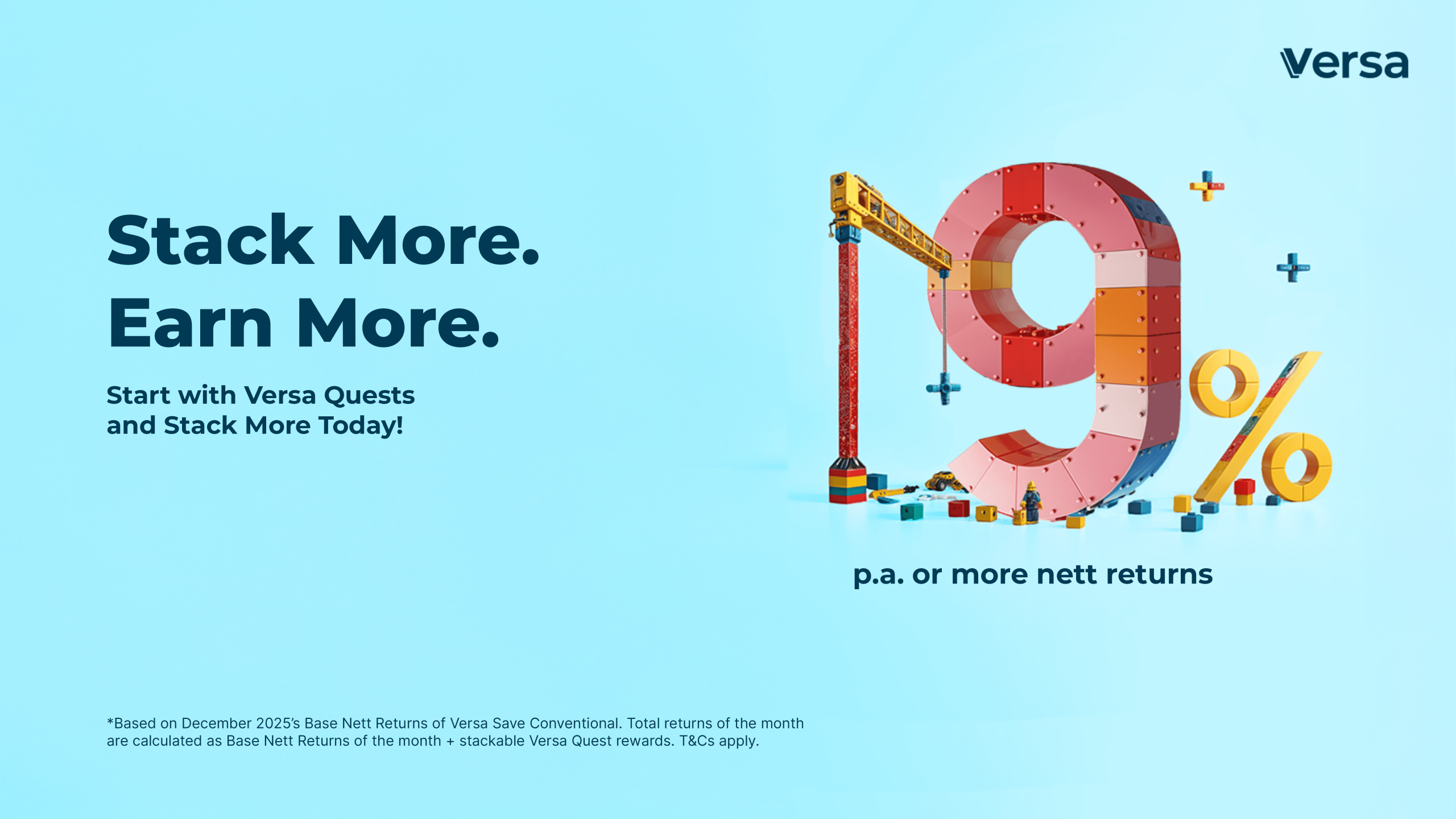By completing any of these Quests, you’ll be eligible to stack and earn 9%* or MORE nett returns in Versa Save!