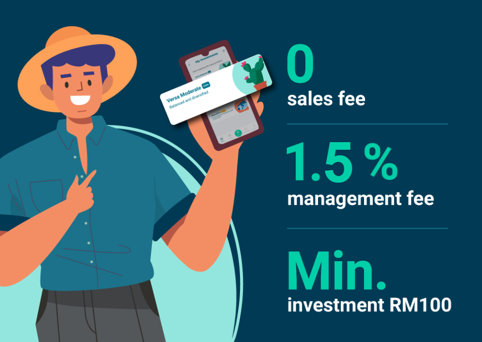The majority of the offering is invested in fixed income (74%). Traditionally, mutual funds have sales fees as high as 5%. But with,  Versa Moderate, you can access global equities starting with just RM100 and with zero sales fees! To ensure clarity on the management fee structure, here’s a breakdown of the annual costs associated with Versa Moderate: